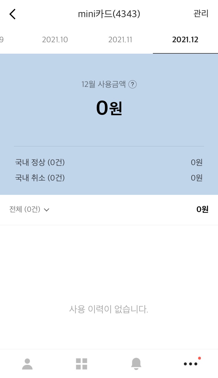 그러면 이렇게 mini카드가 뜹니다 여기서 맨 오른쪽 상단에 있는 “관리”를 눌러주시면