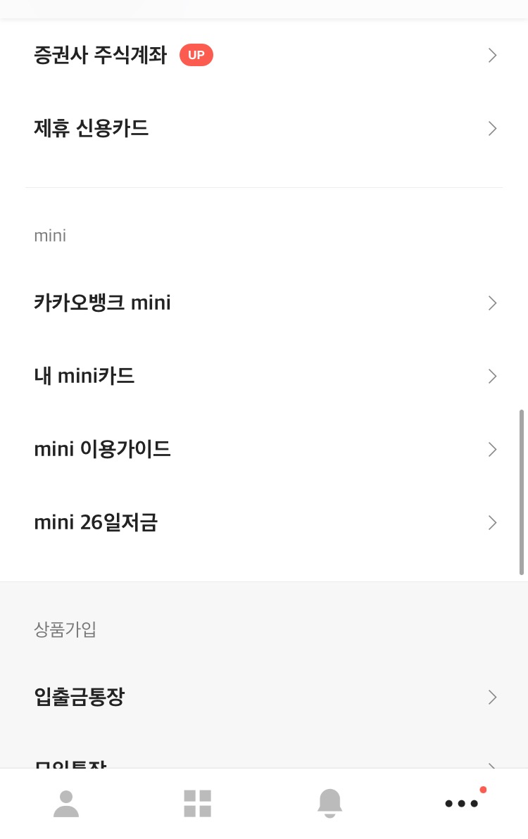 카카오 뱅크 전체 관리에서 “ 내 mini카드 “로 들어가세요